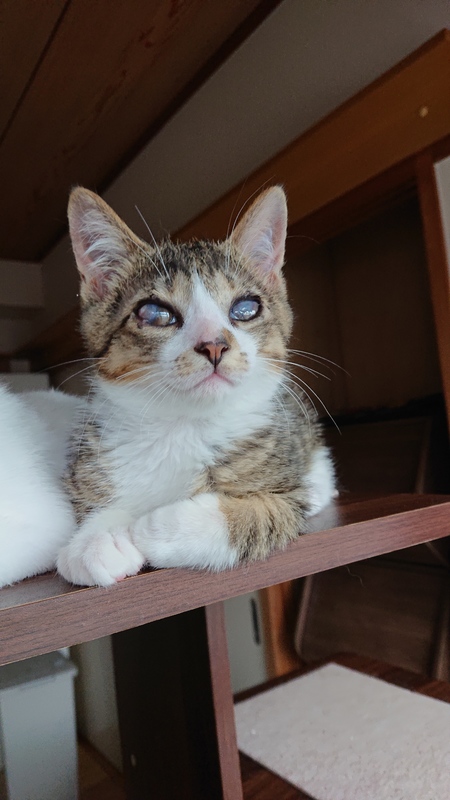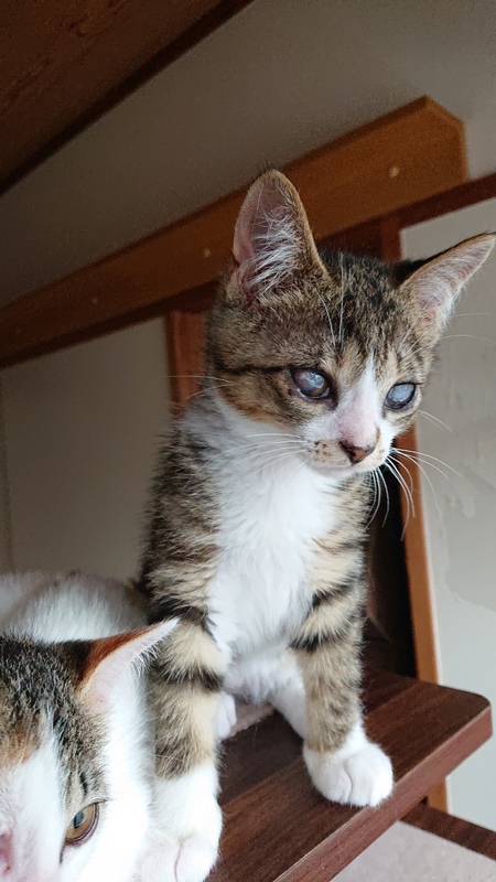| 特徴(性格など) | 白キジ 猫風邪の為、目の治癒中 見えてはいますが、両目とも、軟膏と飲み薬、薄い膜をはったみたいになってます。 こういう子の経験がある方や、わかって下さる方が希望です。 現在1.2キロ 元気によく食べ兄妹2匹で毎日運動会です。 |