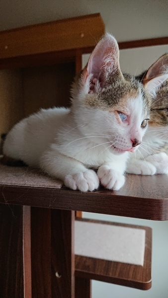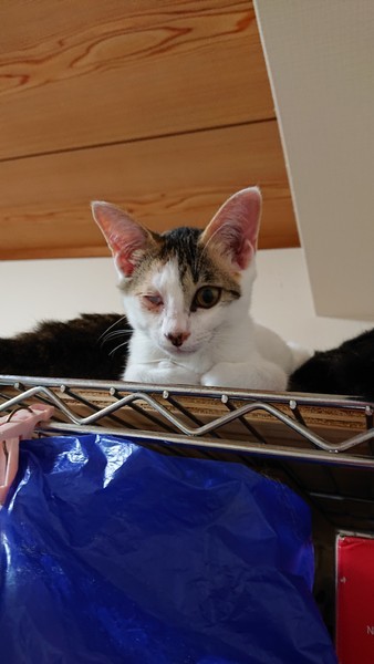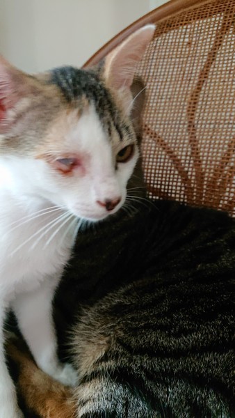 | 特徴(性格など) | 三毛 猫風邪の為、目の治癒中でしたが、終わりました。 膜をはったみたいになってますが、手術は出来ますが、しなくても眼球に支障はありません。見た目の問題です。 こういう子の経験がある方や、わかって下さる方が希望です。 現在1.6キロ 元気によく食べ兄妹2匹で毎日運動会です。 |