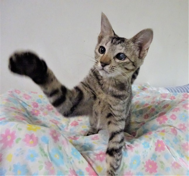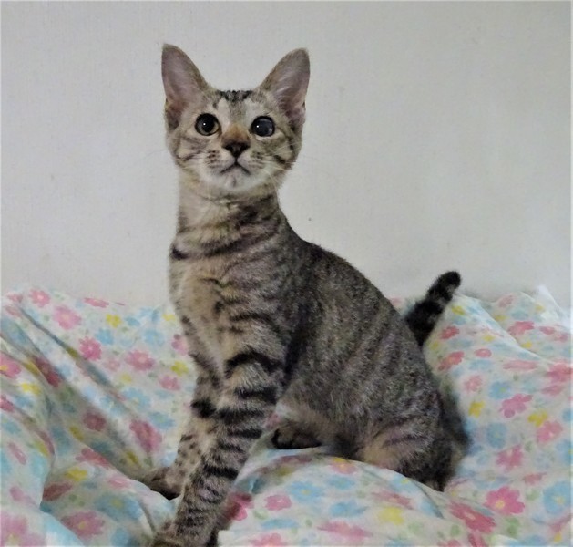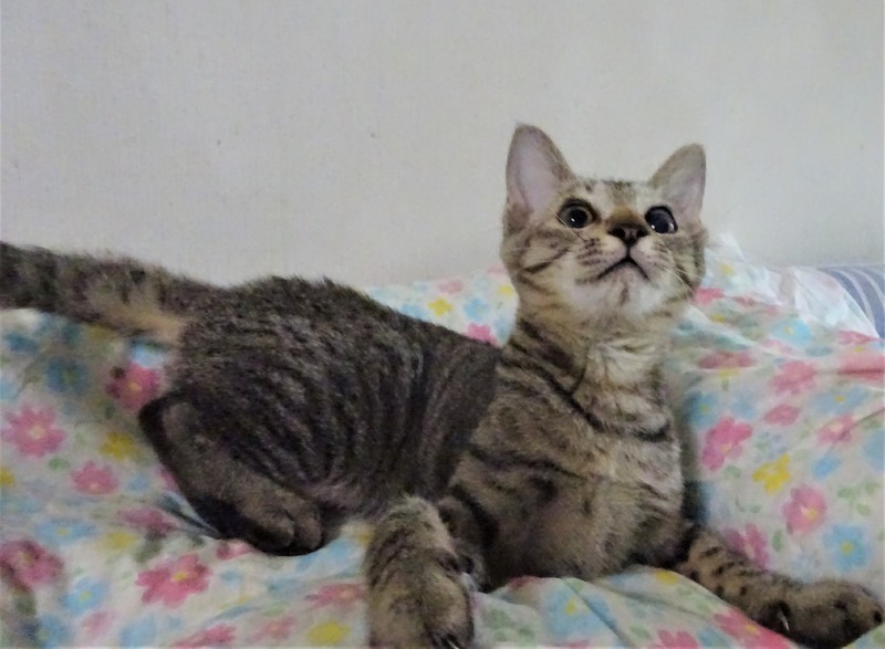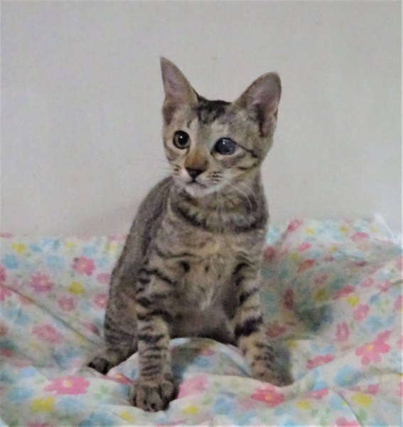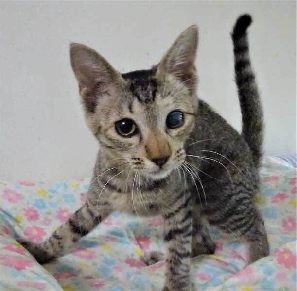 | 特徴(性格など) | 仮名: ボタンちゃん(メス) 毛色: キジトラ、尻尾長い、顔白っぽい 性格: 威嚇なく、人好きな子です。 性格が良く、懐っこいです。 うるさく鳴きませんし、大人しい方だと思います。 一人遊びは大好きで、よく動きます。 保護した時に片方の目がパンパンに腫れ、眼球が生き残るか心配でした。 治療で腫れはひきましたが、角膜はすりガラスのような曇りが出来、片方の目は見えていないと思いますが、見た目もあまりわからず、生活するうえで不自由はないです。飼い主さんの安心の為ケージを使用されると安心だと思います。 のみとり済 検便済 駆虫済 3種混合ワクチン済 避妊手術済 猫エイズ・白血病ウィルス検査はともに陰性 |