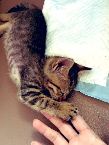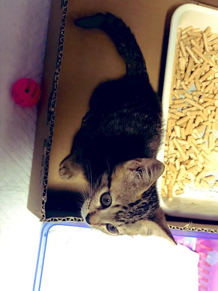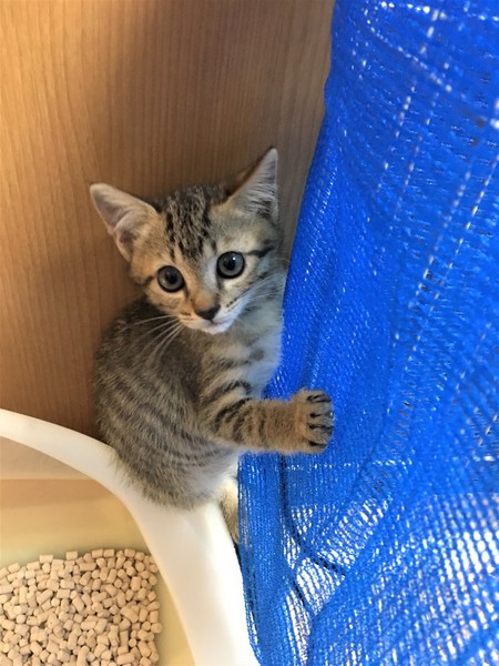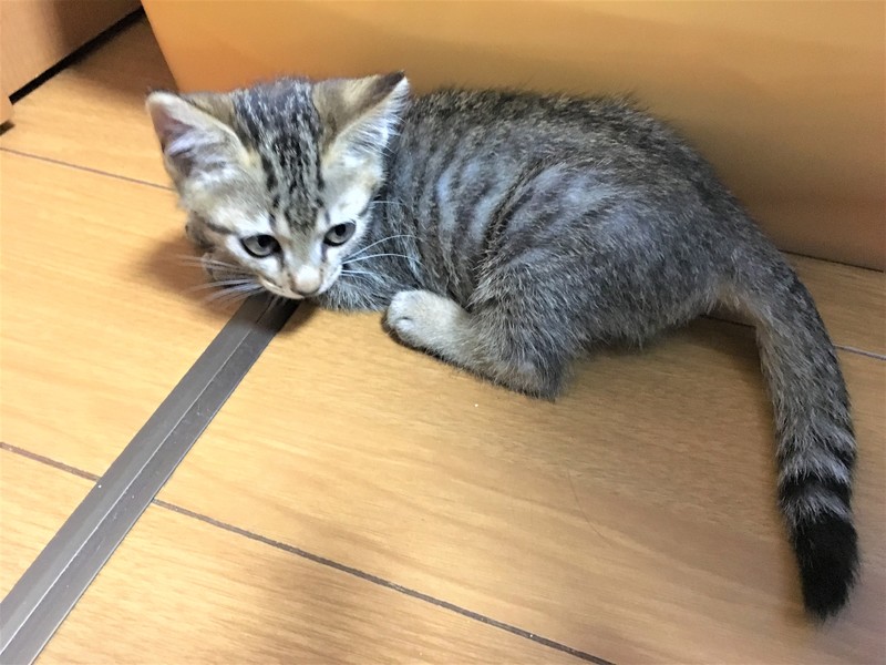 | 特徴(性格など) | キジトラの女の子 甘えん坊で撫でられるとゴロゴロいいます。 遊ぶことが大好きです。 トイレも覚えています。 ※左前脚指2本目が欠損しています。現在治療中ですが、日常生活に問題ありません |