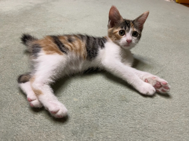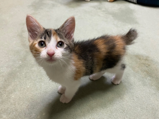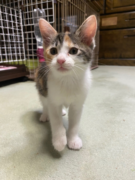 | 特徴(性格など) | ☆☆☆ご希望の方は、以下のアンケートフォームにご記入の上、送信してください☆☆☆ ねこ親希望アンケート→ http://chibawan.net/contactform_cat 【猫No】 3066 【愛称】 ゆば 【性別】 メス 【年齢】 推定2.5ヶ月(20/04/01生) 【毛色】 三毛 【体重】 880g(20/06/12現在) 【状態】 ワクチン1回接種済(20/05/29)、検便・駆虫済、トイレ躾済 【不妊手術期限月】20/06/26不妊手術予定 【預かり場所】 神奈川県川崎市 【日記】renhana7(インスタグラム) https://www.instagram.com/renhana7 【経緯】 千葉県動物愛護センター(本所)より引き取り 【性格】 マイペースな女の子です。猫じゃらしで遊んでもらうこともおもちゃで一人遊びするのも上手です。同じ月齢の子猫ともよく遊びますし、年上の猫とも上手に付き合います。 まだまだスキンシップが必要な時期ですので、お留守番がないかできるだけお留守番の短いご家庭を希望いたします。 【補足事項】『みそ』『いなり』と姉妹です。 不妊手術、マイクロチップなどの医療処置が済んでからのお届けとなります。 【その他】 愛情いっぱいの終生飼養、ネコにあった生活スタイル、完全室内飼育、定期的なワクチン接種などの健康管理をお約束いただけ、迷子防止に細心の注意を払い実行してくださる、関東近県のご家庭でアンケートに快くお答えいただける方からのお問い合わせをお待ちしています。 なお大変申し訳ありませんが、単身の方や同棲カップル、主にお世話してくださる方がご高齢の方のご家庭である場合のお申し込みにつきましてはお断りさせていただきますので予めご了承ください。 |
