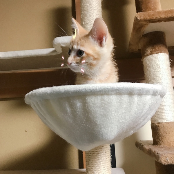 | 特徴(性格など) | とってもおちゃめで、遊びが大好きなオレン君♪ ご飯も水も食いつき良し♪ 良く遊んで良く食べて遊び疲れると気持ちよさそ〜に( ˇωˇ ) zzZZZZ 遊びも大好きで、猫じゃらしをだすと直ぐにテイテイしてきます^_^ おトイレもきちんと自分で出来る良い子です☆ |