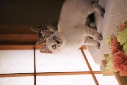 | 特徴(性格など) | 名前:シフォン 人懐こくてすぐ喉をゴロゴロ鳴らします。 甘えん坊のシャムMIXの女の子 幸運のカギ尻尾です。 |