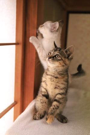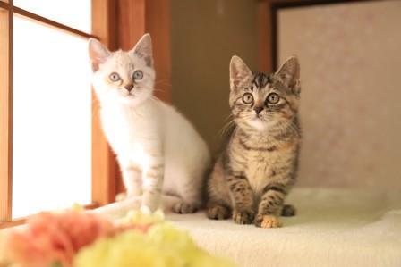 | 特徴(性格など) | 名前: ショコラ(ムギワラ):シフォンに比べると慎重派ですが抱っこもできます。おとなしい性格です。 シフォンとは姉妹です。 |