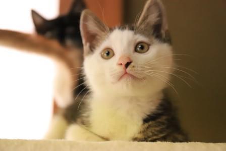 | 特徴(性格など) | 名前:かっぱちゃん ぱっつん前髪がとってもかわいい。兄弟3匹の中では一番慎重ですがとっても人懐こい子です。 百音・結弦の兄弟猫です。 兄弟ペアまたは3匹で引き受けていただけるご家族優先します。 |