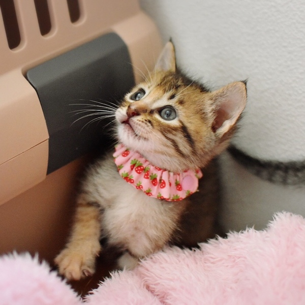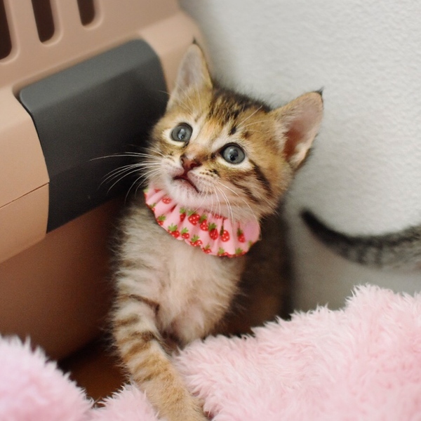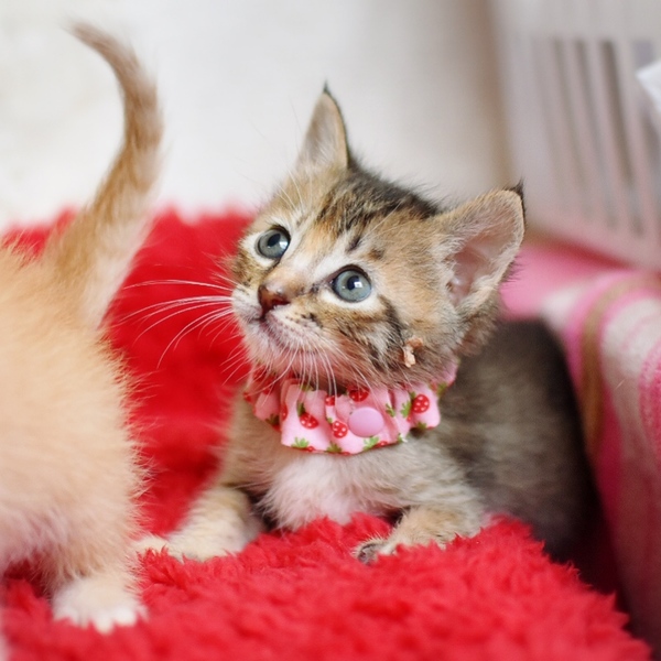 | 特徴(性格など) | 仮名は【風愛:ふあ】といいます ムギワラ猫、フルテイル、オレンジ色がチャームポイントの美猫 生後1週間からミルクで育てていますのでニンゲン大好き甘えん坊さん このこは天真爛漫、明るい性格で物怖じしないタイプです *生後1ヶ月 *エイズ白血病マイナス *便検査、駆虫すみ |