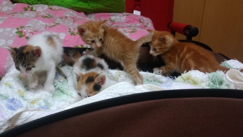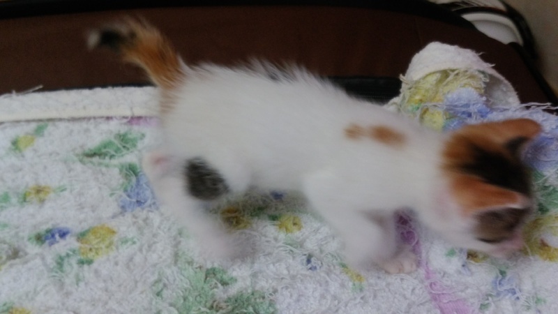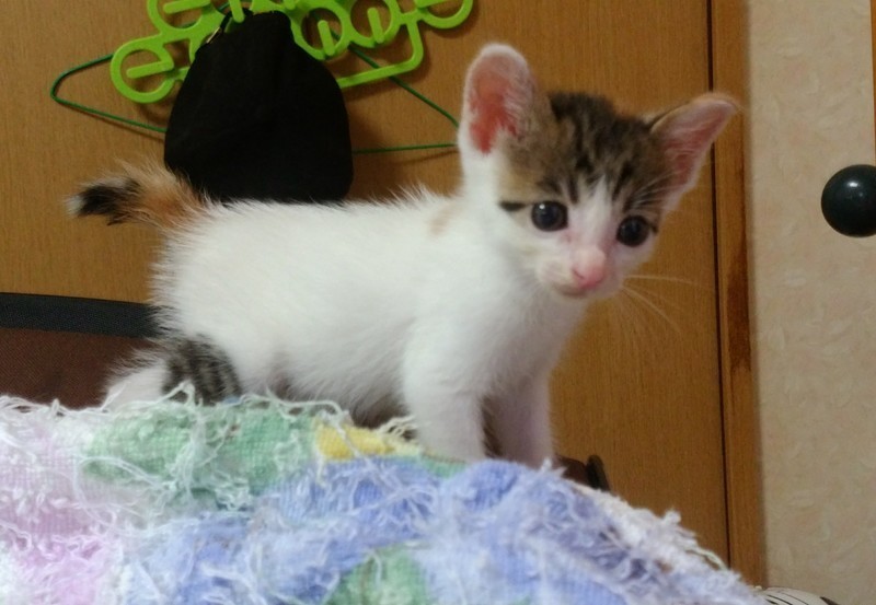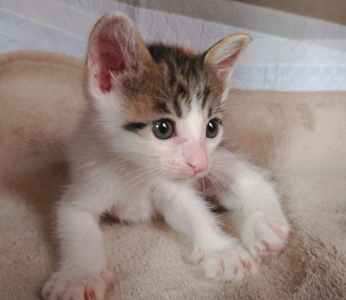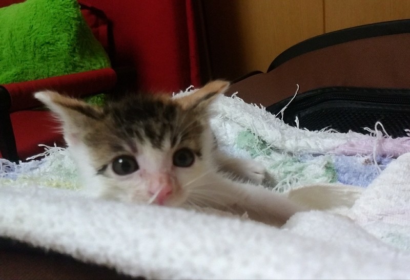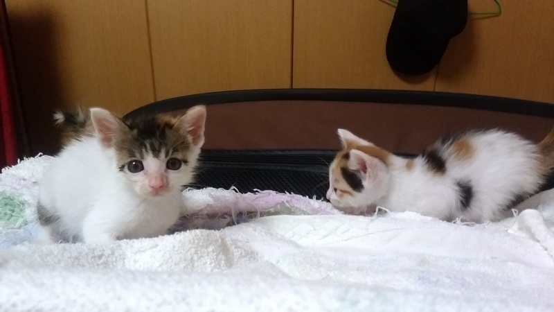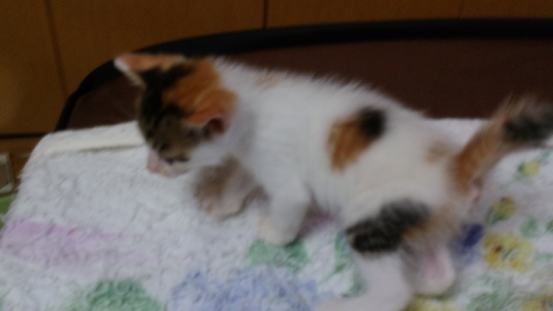 | 特徴(性格など) | トラ模様の入った三毛猫ちゃんです。 女の子。 尻尾は短いです。 お目々が大きくまん丸で、くりっくりしてます。 痩せているので、ちょっとネズミっぽく見えていましたが、 少しずつふっくらして可愛くなってきました。 性格は、活発なお転婆娘! 遊び大好き。ご飯大好き。 撫でられるの大好き! 毎日元気一杯です。 【健康状態】 ノミダニ駆除済み |