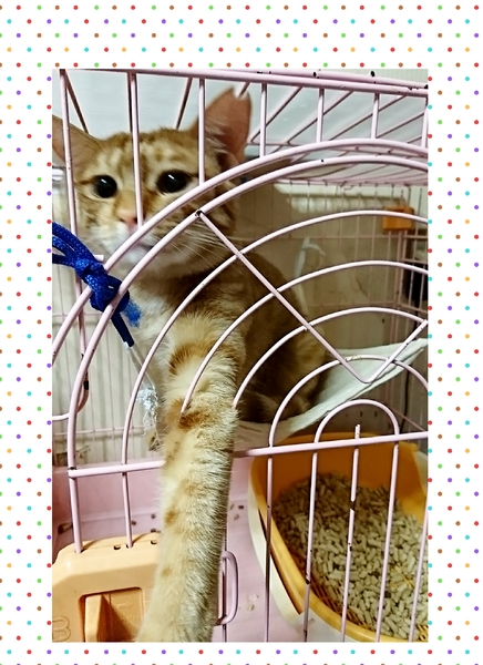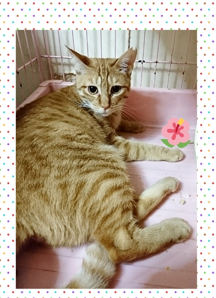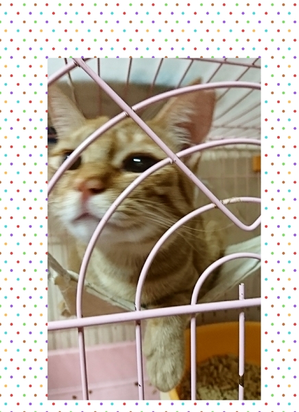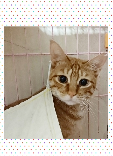 | 特徴(性格など) | 茶トラの女の子。約1歳。 ひとなつっこい子で、初対面の人に対してもケージの中から鳴いてアピールする、とっても可愛い女の子です♪ |