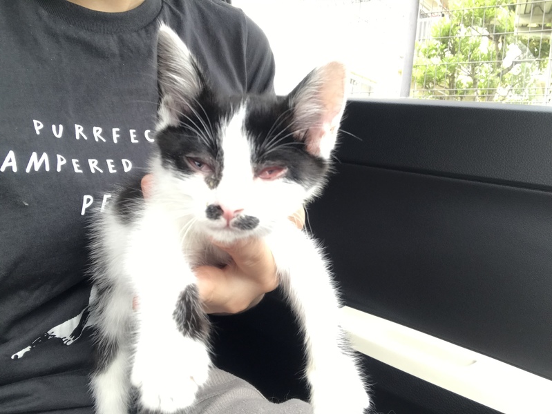 | 里親募集する理由 | 赤く腫れた目、くしゃみから猫風邪の可能性があるため、先住の猫ちゃんたちがいて、狭い家では大きくなっていくことを考えると暮らしていくことができません。そのため可愛がってくださる飼い主さんを募集したいと思いました。 | ||