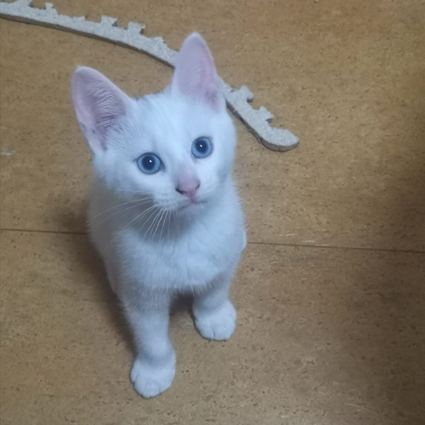 | 特徴(性格など) | まっしろで頭のてっぺんだけグレーの毛が生えてます(^-^) 兄弟1やんちゃで元気いっぱいです! |