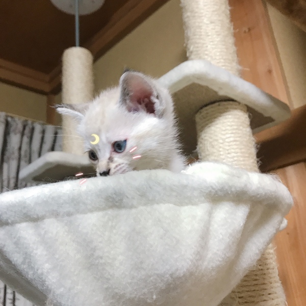 | 特徴(性格など) | 獣医さんによると生後1ヶ月位です。 とても人間が大好きな女の子です。 遊びも好きでお腹を出してじゃれてきたり背中や方に登って来るもの大好きです^_^ 触って撫でててあげると直ぐに喉をゴロゴロ鳴らしたり、後をちょこちょこついてきたりします。 |