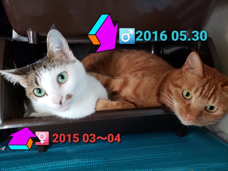 | 特徴(性格など) | 1歳差ですがずっと一緒に居たので、 出来れば2匹一緒に引き取れる方希望です。 ◆白サバ (メス) 2015.03生 不妊未 カギしっぽ、細くて小柄。 ツンデレです。 ◆茶トラ (オス) 2016.05.30生 去勢済 とにかく甘えん坊で、人間大好き。 2匹とも人馴れしており、小さい子供も慣れています。 完全室内飼いです。 ・ワクチン接種は昨年までしてます。 |