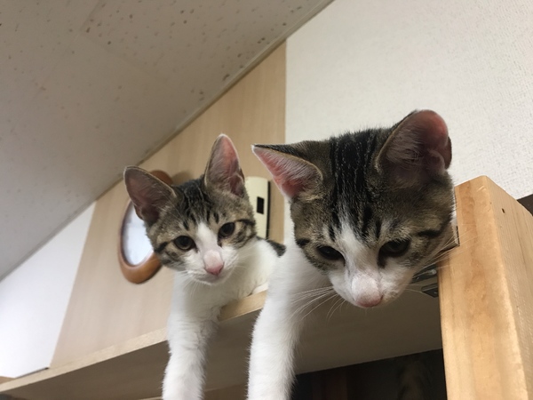 | 特徴(性格など) | 白とさばトラのミックス オス2匹はそっくりですが、一匹はシッポが曲がってます。 メスの方はトラ柄が濃いです。 |