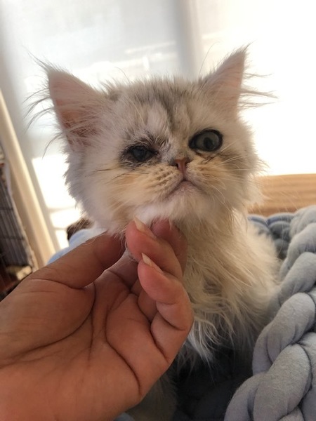 | 里親募集する理由 | とある劣悪なブリーダーからレスキューされた純血種のペルシャ猫で、名前をルカと言います。レスキュー当時、生後1〜2日でヘソの緒も付いた状態でしたので、授乳をしながら育てました。 先天的な疾患で右目を失明してしまいましたが、左目は見えていますので、生活には全く支障なく、キャットタワーやソファーなどに飛び乗ったり、兄妹達と楽しく遊んでいます。 このブリーダー宅からは沢山の猫達が保護されましたが、不幸にも命を落としてしまった子達もいます。ルカ君にはその子達の分も幸せになって欲しいです。 |