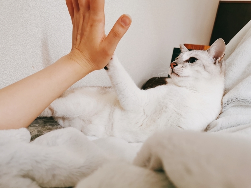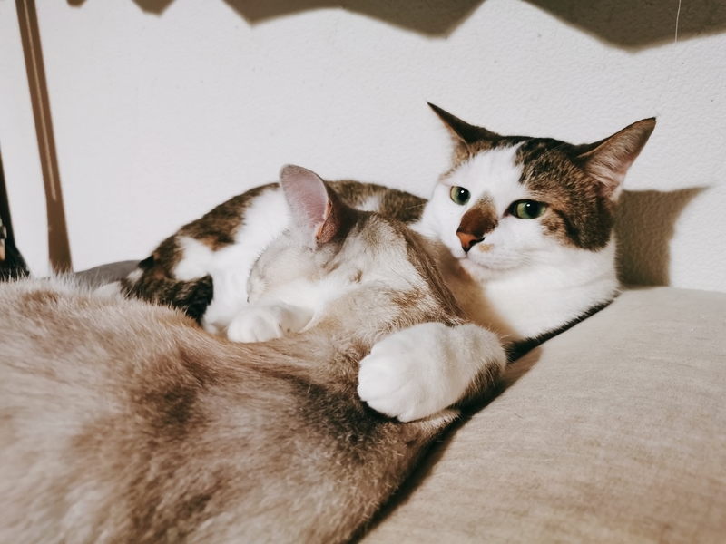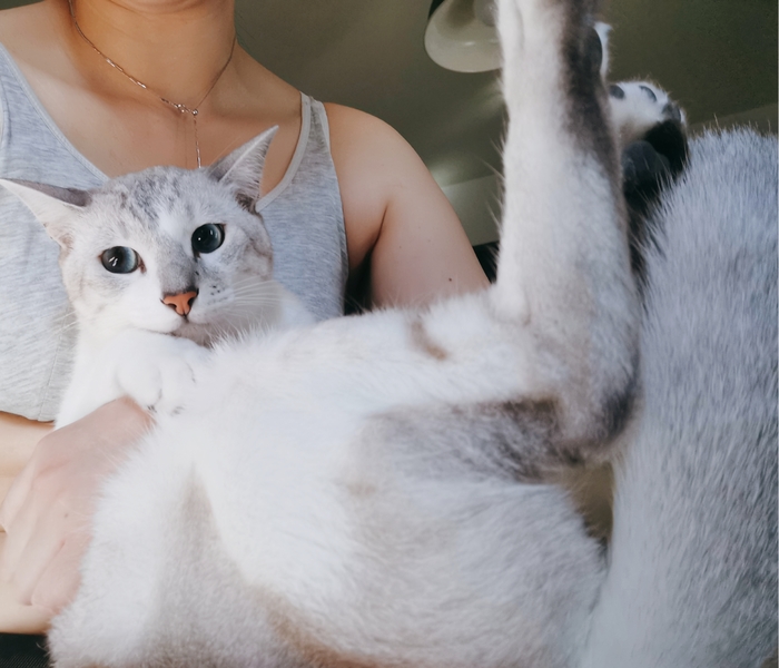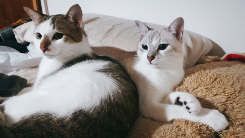 | 特徴(性格など) | 薄グレー縞+ブルーアイ ビビリで知らない人が来ると隠れてしまいますが、とても温厚な子です。 抱っこは好きではないですが少しなら我慢してくれますし、爪などは大人しく切らせてくれます。 キジ白+グリーンアイ 薄グレーより更にビビリで、抱っこなどはパニックになってしまい、爪切りも一苦労です。 でも慣れると女の子みたいに高くて可愛い鳴き声で甘えてきてくれ、ベッドも寄り添って一緒に寝てくれたりします。 2匹とも撫でられるのはけっこう好きで、撫でてと擦り寄って甘えてきます。 お手も覚えさせたので、慣れたらやってくれるかもしれません。 兄弟とっても仲良しなので、ラブラブべったりな姿を見れちゃいます。 |