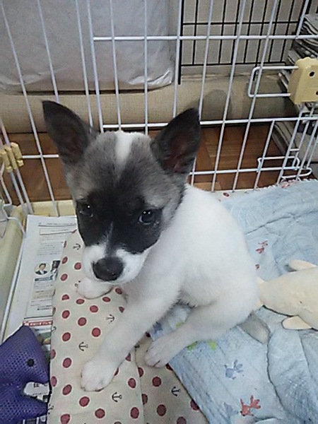 | 特徴(性格など) | 6/22測定・体重2.7キロ、将来は中型になりそうです。 クルミちゃんが来て20日近く最初は食も細い感じでしたが、だいぶ慣れてきて最近は催促してきます。 近づくと短い尻尾をフリフリ!!可愛いです。 |
