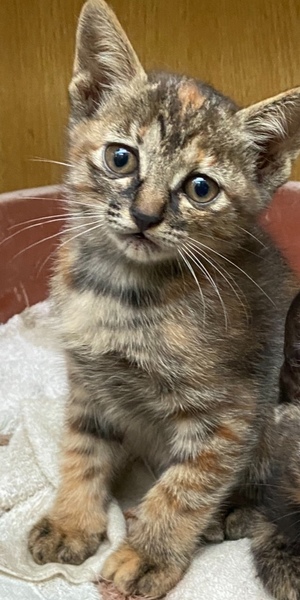 | 特徴(性格など) | とても人懐っこい甘えん坊です。 兄弟で良く遊んでいたので、2匹目に迎えても大丈夫です。 また、サビ色ですが、シマシマも入っている変わった柄です |
