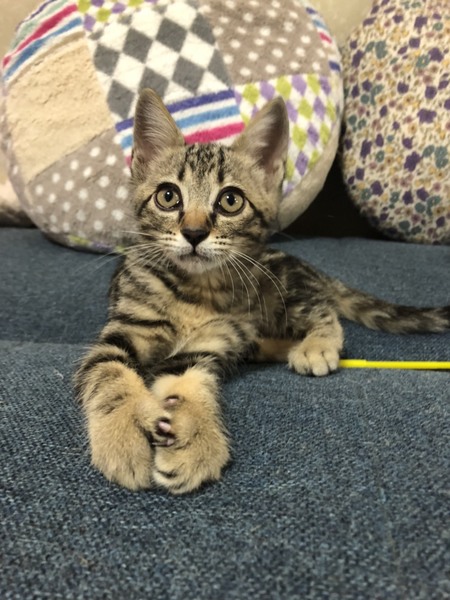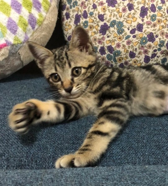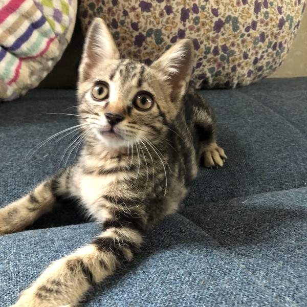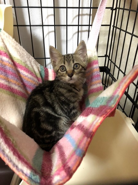 | 特徴(性格など) | 2020.4.12生まれ(推定) 毛色:キジトラ アメショ柄の、2か月の女の子♪ 少し垂れ目の大きなお目目がチャーミング♡ 運動神経が抜群に良く、ピョンピョンと元気に飛びまわります。 猫も人も大好き♪ 抱っこされるとゴロゴロいっちゃいます。 甘えん坊のすなぎもと、いっぱい遊んでくださいね。 |