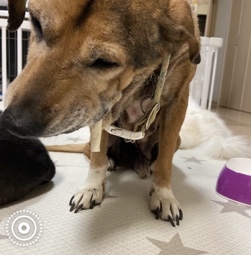 | 特徴(性格など) | 名前:まちゃ 犬種:ビーグルMix 性別:オス♂ 毛色:黒茶白(足先白ソックス) 年齢:8〜9歳くらい 体重:19kg 性格:最初はちょっっと人見知りしますが、時間が経つと人にも甘えにきます。慣れた人には甘えに行くこともします。 ほとんど吠えることもなく、ちょっと大きめですが、とてもおとなしく飼いやすい子だと思います。 今は、トイレはトイレシートでできますが、基本的には外派です。 外で排泄したら結構家の中ではおしっこしないです。 レスキューした時には、マーキングをしてしまっていましたが、去勢手術をするとしなくなりました。 散歩中にもトイレをしますので、室内、室外両方できます。 ハウスの中では、トイレは一切しないです。 散歩は好きなのですが、グイグイ引っ張ることはないです。 ご飯はドライフードだけでもよく食べます。 シャンプーは大人しくできますが、ドライヤーがちょっと嫌がります。 車酔いもなく、大人しくできます。 インターホンや他の犬にも吠えることはないです。 たまに、ご飯の準備をしていたり、散歩の準備をするときに興奮して吠えることがあります。 顔の割には心優しいおっとりしてる、まちゃを幸せにしてくださるご家族様をお待ちしております。 |