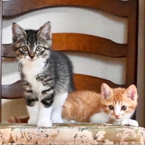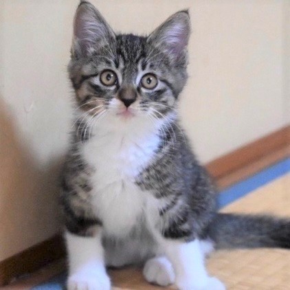 | 特徴(性格など) | 長男坊な感じで、のんびり屋さんでおっとりとした性格です。 テラくんと似ていますが、マヨくんの方がキジ模様が黒っぽい感じで、ふっさりしています。 よく食べる健康優良児。 ふにおくん、テラくん、ぶらんくんと4兄弟仲よく遊んでいます。 脱走対策をしっかりして下さるお宅を希望します。 また、兄弟2匹でのお迎えも大歓迎です! |