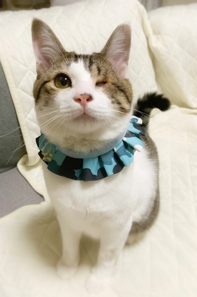 | 特徴(性格など) | 仮名:ルミエル 体重:5キロ少し 毛色:キジ白(光の角度でサバ白にも見える、芸術的な美しい色合いと模様) 外見も性格も天使のように純真で愛くるしい子。 人間も猫も大大大好きです。 ☆外見☆ 大きくつぶらなお目目とウインク☆ ピンクのお口はいつでもニッコニコで天使の笑顔 優しいグレー色の縞に、粉雪のような真っ白のフワ毛 ハッキリくっきり美しい模様 色もキジとサバがほんのり交わり、光の当たり方で色が変わる、自然な美しさ 肉球はピンクと黒のアポロチョコ! 見た目や雰囲気もふんわりしていますが、実際触っても モチモチふわふわ、しっとりの触り心地… 見ているだけでも一緒に遊んでも、モチふわに触れていても、常に癒しと元気の塊のような存在です。 ☆性格など☆ とにかく本当に無邪気な子です。 いつまでも子猫のように天真爛漫で純粋無垢で、 そして「大の人間好き」! 初対面の人にも、すぐに甘えたりお尻を持ち上げて「なでて~♪」とアピールしたり、 遊んでもらえば永遠に夢中で遊んでいます(笑) 嬉しくなるとあっちにスリスリこっちにスリスリ、止まりません(笑) 病院ですら毎回楽しそうに探検し、先生の胸元にくっついたり看護婦さんにも抱きついてチューまでするほどの懐きっぷりで大変驚かれます^^ すぐにご機嫌に喉を鳴らしながらふわふわベッドにフミフミしたり、しょっちゅう赤ちゃんのように自分のおててをチュッチュ吸っています♪ 未来のご家族はキュン死しないように気を付けなければいけません(笑) 名前を呼ぶとご機嫌で返事してくれますが、その時の声もなんとも言えず可愛らしいです。 ルミくんは表情も仕草もすごく豊かで、見ていて全く飽きません。 人も猫もご飯も遊びも、何もかもが楽しくて仕方ない様子です。 初めて猫を迎えるご家庭にも自信を持っておすすめできる、大変一緒に暮らしやすい子だと思います。 先住猫さんのいるお家にもお薦めNO.1な子です! 先住さんの性格にもよると思いますが、他の猫の事も大好きで、初対面で威嚇する新入り猫にすら大喜びで「遊ぼうよ〜遊ぼ〜」と近づきすぐに仲良くなるのには保護主も大変驚きました。 我が家の猫達とも大変仲が良く、猫嫌いの子ですらいつの間にか打ち解けさせるルミくんにはもう脱帽です。 大きいお兄ちゃんにも甲斐甲斐しくグルーミングしてくれる、本当に優しい子です。 ここからはルミくんのお目目についてお話しします。 片目を無くした事を、つい可哀想に思ったり、日常生活の大変さを想像してしまう人もいるかも知れません。 しかし実際には、何匹も色んな猫を見てきた私から見ても、両目がある子と何も変わりません。 本ニャン自身全く気にしておらず、「そんなのなんでもない!ぼく元気だよ!」とばかりに元気いっぱいに走り回っています♪ むしろ我が家で一番、高いところに登るのが得意で運動神経抜群です。 あまりに普通すぎて「そういえばルミくんは片目の猫ちゃんだったな」と、思い出すくらいです(笑) そのニコニコ笑顔と、いつでも楽しそうな姿に、ルミくんを見ていると自然にみんなニコニコになります。 保護主の贔屓目ではなく、ルミくんに会った事のある人全員が証人です^^ ルックスも性格も天使のようなルミくん♡ 本当のご家族は幸せ間違いなしです。 天使をお家に迎えてみませんか? ☆日頃の様子は以下からご覧いただけます☆ ツイッター http://twitter.com/chatmi9 ブログ http://chachandaisuki.blog.fc2.com/ 【健康状態】 極めて良好です。 食欲旺盛で快便。 (我が家ではトイレの失敗は一度もなく、固まる砂タイプでもシステムトイレでも上手にできます。) ・片目ですが、定期的に目の周りの涙や汚れを拭いたり点眼程度のケアで、私も普段忘れているくらい(笑)両目があるのと全く変わりませんのでご安心ください! ・ノミ取り・駆虫済み ・FIV、FeLVともに陰性 (2020年1月現在) ・3種混合ワクチン3回接種済み(2018年9月、10月、2019年12月) ・去勢手術済み(2018年12月) ・その他、現時点で必要な基本医療ケアは終えています。 (今後、追加の医療ケアが発生した場合は必ずお知らせします。) |