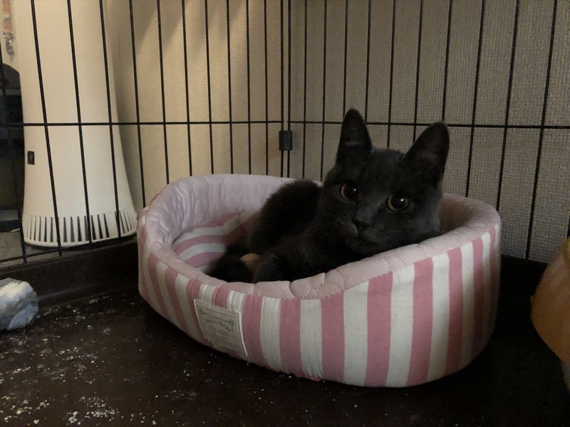 | 特徴(性格など) | 真っ黒のメスの子が残ってしまいました。 元気で活発です、この子はレーザーが大好きでずっと遊んでくれます。 まだ、人間になれていないところもありますが、遊んであげたりご飯の時はすり寄ってきます。 |