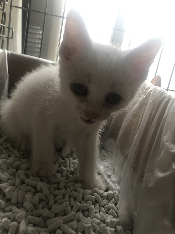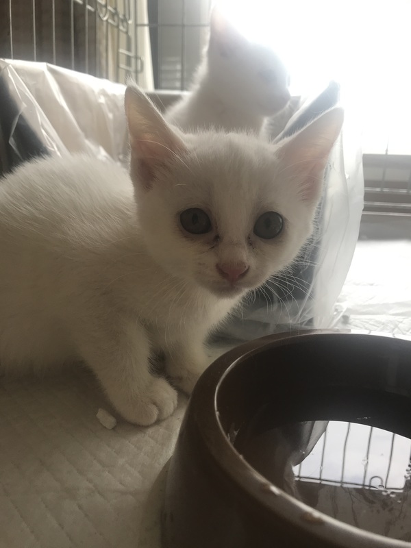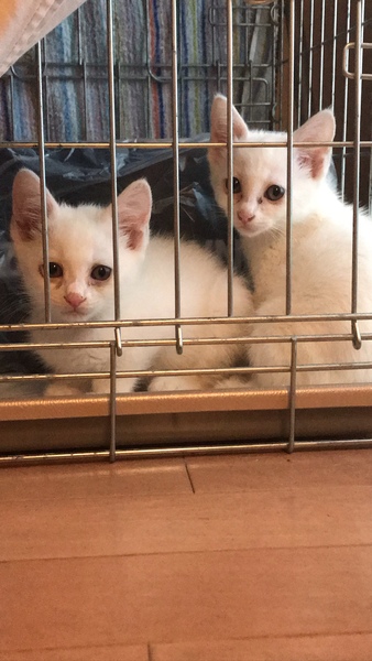 | 特徴(性格など) | 体毛は白です。 鼻と肉球がピンクでとても可愛らしいお顔をしています。 保護してから3日目ですが、野良猫だったこともあり、懐いておらず、威嚇をしています? |