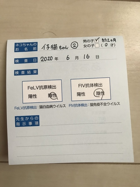 | 特徴(性格など) | 顔がパンダみたいな特徴の猫です。 6月16日に兄弟2匹(目黒くんと鼻黒くん)を保護しました。 保護した時には骨と皮でガリガリでした。 とっても人懐っこいので、しっかり食べて太っていけば、より可愛くなると思います。 血液検査にて、白血病ウイルス&免疫不正ウイルスともに陰性。お渡しする際に検査結果カードを一緒にお渡しします。 また、ノミダニも病院にて駆除済みです。 |