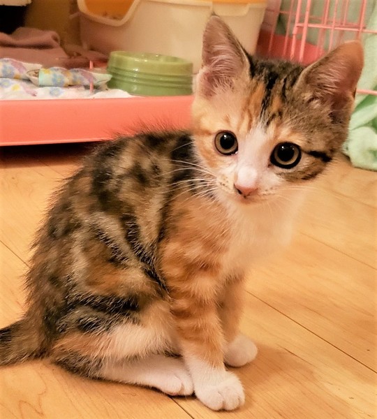 | 特徴(性格など) | 仮名: くらら 毛色: 三毛 性格: 人馴れしていて遊ぶ事が大好きです。 活発です。 人の手も足も遊び道具にしてしまいます。 毎日疲れるまで猫じゃらしを振って遊ばせて下さい。 まだ小さいので、暫くは留守番時間の短いご家庭で見守って頂きたいと思います。 * 駆虫済 * 3種混合ワクチン済 * 猫エイズ・白血病ウィルス検査はともに陰性 |