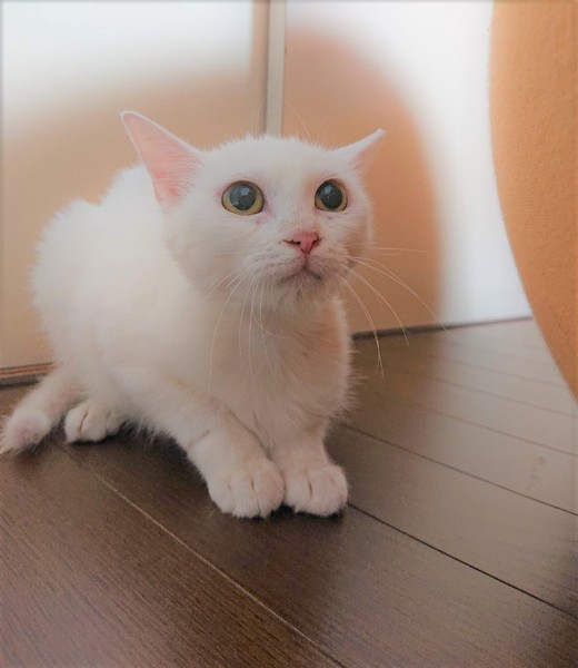 | 特徴(性格など) | 2020.1.7生まれ(推定) 毛色:白 お外で一人で頑張ってきたせいか、ちょっぴり怖がりな女の子。 ひとまずシャーはご挨拶(笑) 座って優しくお膝に乗せてあげれば、控えめに喉をゴロゴロ鳴らしてくれます。 が、長時間の抱っこはモジモジ・イヤイヤしちゃうツンデレ系女子。 おもちゃで遊ぶのは大好きです。 白猫ですが、しっぽは少しだけクリーム色。 しっぽの先端は子豚のようにくるりん♪と円を描いています。 ケージでのお留守番には慣れています。 |