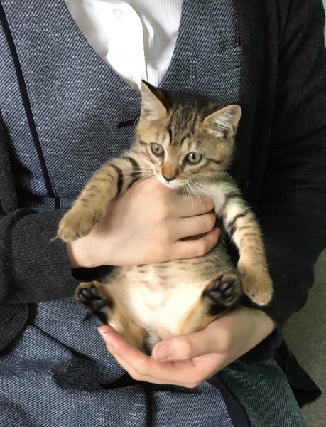 | 特徴(性格など) | 2ヶ月のオスのキジ猫です。 甘えん坊の懐っこい子です。 体重730g 人慣れしておりトイレの躾済みです。 |
