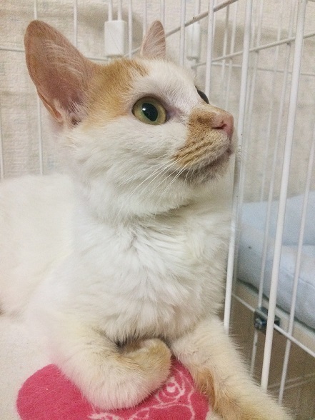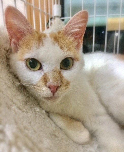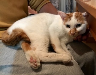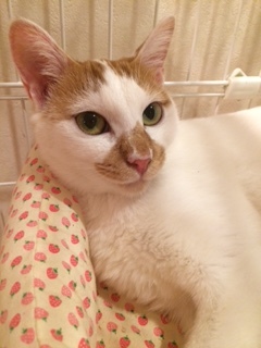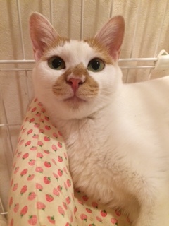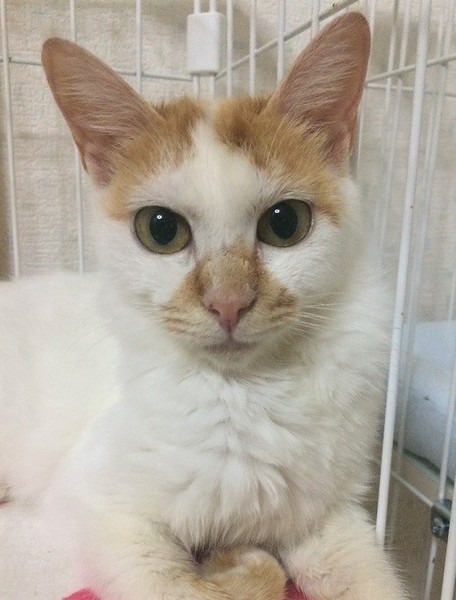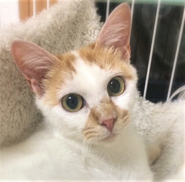 | 特徴(性格など) | 【猫の仮名】 シフォン(担当者 桂) 【毛色・柄】 白茶 白いボディで、ハチワレの前髪。お口の周りがスペード形になっています。 しっぽは、しましまでクルンと巻いています。 切長の大きな瞳の美猫ちゃんです。 おもちゃで遊ぶの大好きなおてんばで元気いっぱいの女の子です。 目があうと『ミャっ』とご挨拶♪ お膝の上が大好きで、自分から乗ってきてゴロゴロ甘えます。 寒い冬もシフォンちゃんがいればきっと暖かくなると思います♡ |