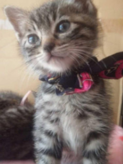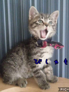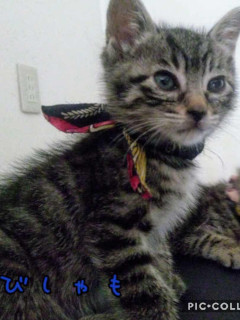 | 特徴(性格など) | ☆★☆★現在お見合い予定がございます☆★☆★ 仮名を『びしゃも』と言います。 センターに収容されtました。 魅惑のどすこいボディーのキジトラの男の仔です。 胃袋ブラックホールで、食べている所を見ていると気持ちよいです(笑) 将来は特大サイズになりそうです。 ご飯の時以外はおっとり優しい子です。 人見知り猫見知り無しで、現在ちょっとシパシパなお目々のための目薬も、全然抵抗無しの楽チンさんです。 びしゃもの他に兄妹の『べんてん』と『だいこく』がおります。 兄妹一緒のお迎えや、フレンドリーな先住猫さんのいらっしゃるご家庭を希望しています。 トイレもバッチリ! 仔猫用ドライフードやウエットフードを食べています。 【医療処置情報】これから実施のも含まれます *健康チェック *3種混合ワクチン接種 (年1回定期的にしております。詳細はお見合い時にお知らせいたします) *ウイルス検査実施(FIV.FeLV共に陰性) *検便実施 *駆虫薬投与(レボリューション、ドロンタール) *マイクロチップ装着 *不妊・去勢手術 |