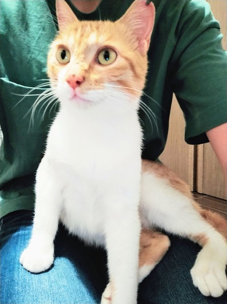 | 特徴(性格など) | 茶トラ白 元野良猫とは思えないくらい人慣れしていて、 初対面でもゴロゴロスリスリしてくれる甘えん坊です。 獣医さんによると生後約8〜10ヶ月とのことです。 少年らしく好奇心旺盛に部屋の中をあちこち探検したり 人を見るとすり寄ってきて膝に乗ったり遊んで〜とアピールします。 おもちゃで遊んだり、爪とぎをしたりする姿はすでに家猫! だっこも嫌がらないので初めてネコを迎える方にもおすすめです。 鳴き声もかわいくて、話しかけるとおしゃべりします♪ 同時期に保護したメスの黒猫ラムちゃんにちょっかいをかけては 怒られてしょんぼりしています。。。が、すぐに忘れてしまうのか はたまた気にしない性格なのか。。。 またちょっかいをかけては叱られる、の繰り返しです( ´艸`) なんだかんだ憎めない性格で、きっと世渡り上手なタイプ゚かとo(^・x・^)o ラムちゃんとも絶妙な距離感で上手くやっています。 |