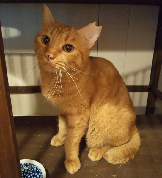 | 特徴(性格など) | 仮名:ちよ 毛色:あまりいないといわれている茶トラの女の子です。(今回の多頭崩壊宅には何匹かいますが) 瞳の色:明るい茶 尻尾:中ぐらいの長さの曲がり尻尾 性格・特徴:預かり宅に来て1日、2日だけは隠れましたが、その後は持ち前の度胸を発揮して、家の中を積極的に探検しています。 触るとゴロゴロ喉を鳴らして喜んでくれるようになりました。 お鼻の茶色い点々がつながってラインのように見えるのがチャームポイント。 女の子にしては少しコワモテ気味ですが、そこがまた愛嬌があります。 これまで劣悪な環境で辛い思いをしてきた分、愛情たっぷりに育ててくれる方を希望します。 システムトイレのしつけ済み。 左耳に桜カットあり。 同じ多頭崩壊宅から来た子とペアでの譲渡を希望します。 |