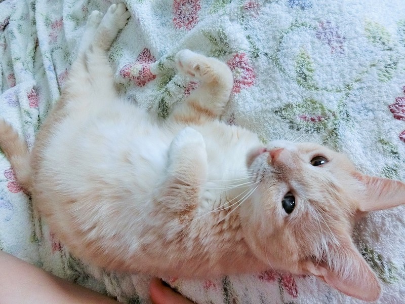 | 特徴(性格など) | 猫風邪の後遺症で慢性的に目と鼻がショボショボしています。特に目は常に腫れ気味でカワウソのようなブサかわになっており、本来の顔が不明です。 見た目のパサパサ感が老猫のようですが、獣医師の見立てでは5~8歳とのことです。 珍しいミルクティー色の毛と、うっすらアメショ風のマーブル模様をしています。 サラサラ乾燥タイプの柔らかい毛質です。ぬいぐるみの毛みたいな手触りです。 今までに出会った猫の中で一番ドライな毛質です。乳児猫の産毛みたいにホワホワ立ってます。 甘えん坊レベルはMAXです。一日の95%を寝て過ごすため、ゴハン、トイレ、スリスリ以外で動きません。。 人間大好きで常に人の近くでイモのように転がっています。一瞬でもさわるとスリスリと頭突きが始まります。 抱っこはできますが、好きではないらしく、抱えられた状態で長くはジっとしてくれません。 ナデナデスリスリは死ぬほど好きで永遠に要求してきます。 たまにクシャミする程度で(粘着系の鼻水は飛ばさないのでインテリアは無事)、特に介護は必要ありません。 体調を崩すと目が目やにでくっついて完全に塞がり、目が見えなくなるため、外では生きていけません。完全室内飼いであれば健康に生きられます。 なんとなく、免疫力が低く、頭も少々弱い印象を受けます。 野良時代に目ヤニをどうにかしようと手でこすったせいで眼球に傷が残り、一部濁っていますが、視力に問題はないそうです。(2回の手術で可能な限り治しました) 缶詰を食べることと、人に甘えることしか考えてない猫です。 長く飢餓状態にあったためか食への執着がすごく、人間の食べ物にも手を出そうとします。 運動量は一切しません。一日中転がっています。 飲食、トイレ、スリスリ以外で動く姿が滅多に見られないほど運動量が少ないです。 基本的に、積極的に他猫との交流を求めません。親愛を向けてくる猫には心を開き、受身でゴロゴロしています。 隣に見知らぬ猫がいても見向きもしないです。先住猫のお友達役としては失敗する可能性があります。 単独飼育は問題ありません。愛情に飢えているため、留守時間の少ない二人以上のお家を希望しております。 今仲が良いのは、一緒にうつっている白黒猫のハッチ(不良債権仲間)です。 |