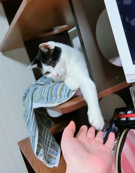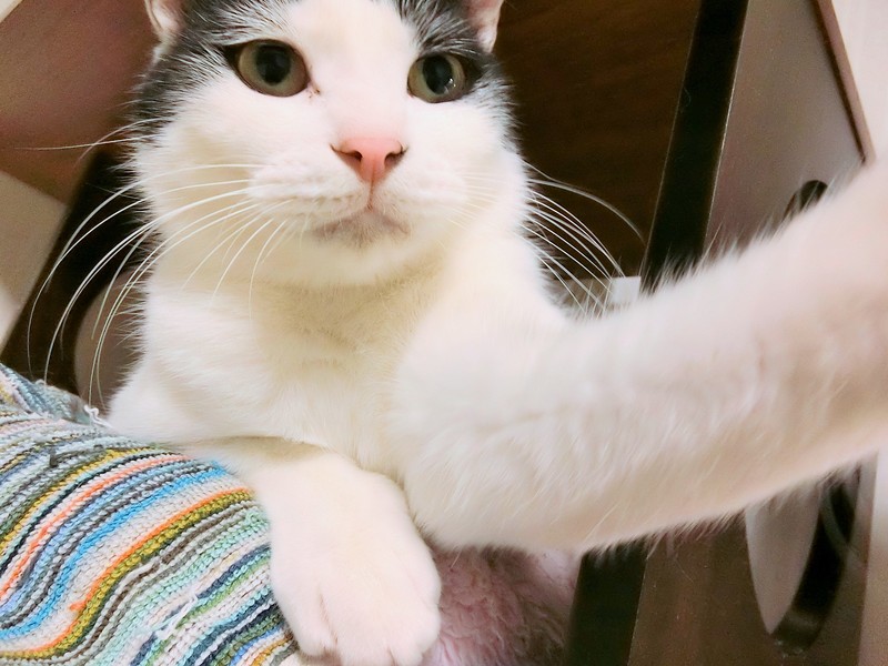 | 特徴(性格など) | 3種ワクチン、エイズ白血病検査(陰性)、去勢手術、駆虫、シャンプー、トイレの躾が済んでいます。 中肉中背、空気中にホワホワしない毛質なので掃除が比較的楽です。 顔は十段階で4.5くらい..ビビリな性格のせいで兄弟で一匹だけ残ってしまいました。 運動量は平均的、遊び友達がいればよく動き、いなければ1人で遊んでいます。 人なれ具合はまだまだ発展途上です。 人間が寝転がっていたり、座っていたりと低い状態なら好んで甘えてきます。 顔をよせればキスしてくれて、手足にスリスリし、話しかけると返事します。 撫でられるのは好きでも、抱っこはまだ難しいです。 数か月前は近寄ることもできなかったので大きく進歩しています。 その内なれるだろうと、スキンシップを取らずに放置してたら懐かないと思います。 声をかけてくれ、可愛がってくれる人にだけ心を開くタイプに見えます。 猫相手にはすごーく愛想がよくフレンドリーです。 誰とでも仲良くしようと自分から積極的に交流しにいきます。 遊び友達がいないと運動量が落ち、ヒマで人間の持ち物を漁ってイタズラに走るため、単独飼育にはあまり向かないです。 こんな状態なので本来まだ里子に出すには早いのですが、近い将来我が家で猫の飼育が不可能になるため、環境に順応しやすい若いうちにと、だめもとで募集に至った次第です。。 一緒に写っている猫(不良債権仲間)は、友達サラミ♂と恋人のビバにゃんです。 |