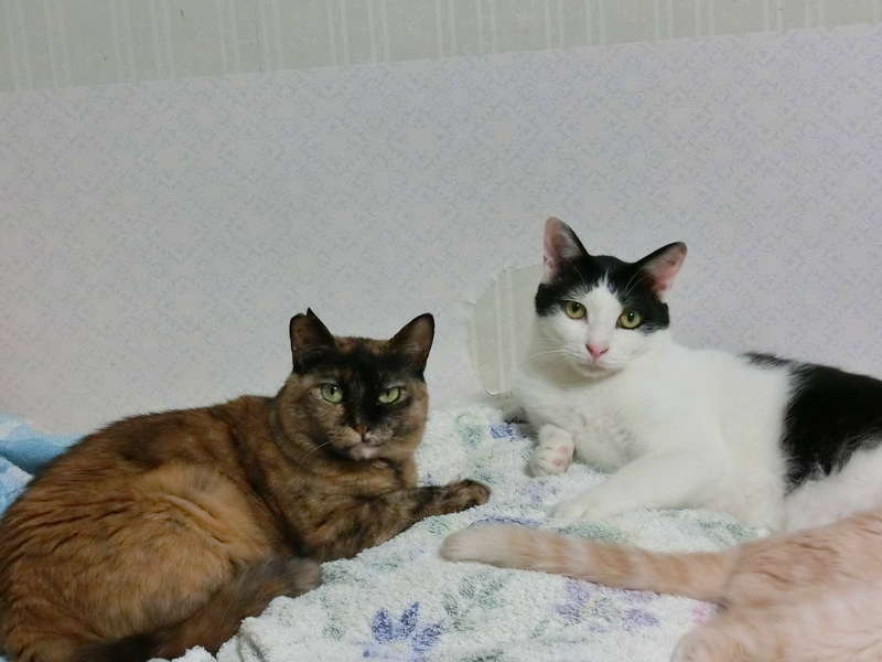 | 特徴(性格など) | 仮名はビバちゃんです。 3種ワクチン、エイズ白血病検査(陰性)、爪切、去勢手術、駆虫、シャンプー、トイレの躾が済んでいます ポッチャリ体型のサビ模様です。 少ししか身動きのとれない、かなり狭いケージで、2年も閉じ込められていました。。 硬いステンレスの上のじっと固まって過ごし、人が近づくと鳴いて呼んでいたそうです。 運動不足により現在はポッチャリ体型ですが、仲良しの猫と遊ぶようになり、徐々に体重が減ってるような気がします。 我が家に来てまだ日が浅いため、詳しい性格はまだ謎です。 運動量は平均的で、遊び相手がいれば動き、いなければ1人でぼーっとしてます。 どんな猫にも平和的で穏やかです。相手が嫌がることはしません。 人間は、可愛がってくれる人にだけ心を開くタイプだと思います。 こちらからスキンシップを取り、たくさん撫でてあげれば、数週間で懐くと思います。 本来まだ里子に出すには早いのですが、近い将来我が家で猫の飼育が不可能になるため、環境に順応しやすい若いうちにと、だめもとで募集に至った次第です。。 仲が良い猫は、一緒に写っている白黒猫のハッチ(不良債権仲間)で、年下の恋人ですっ |