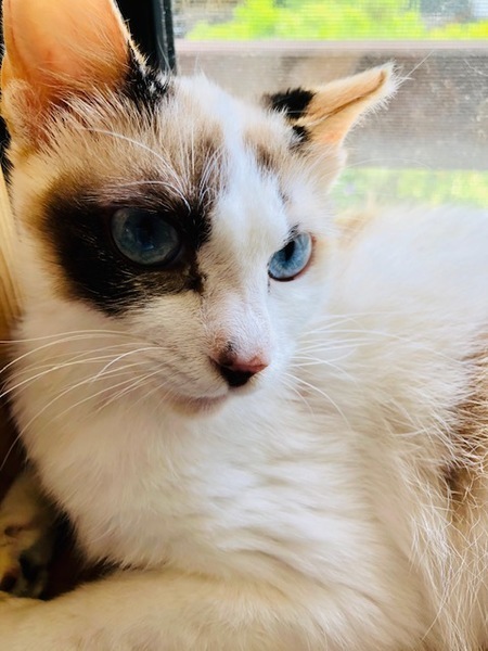 | 特徴(性格など) | きわめて健康です。 とにかく美しいパステル三毛です。 お顔は少しラグドールっぽいところもあります。 瞳がアイスブルーで大きく、吸い込まれそうです。 最初は人見知りしますが、慣れてくると、ゴロゴロ言ってすり寄ってきます。 多頭の地域にいたので、先住ニャンコちゃんがいても、仲良くなれると思います。 |