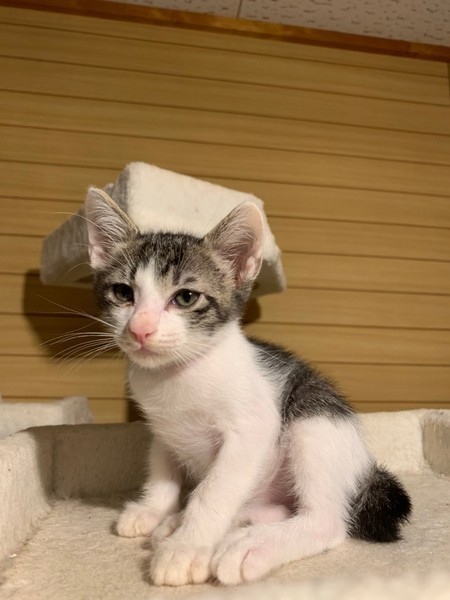 | 特徴(性格など) | ★【諸事情により、当サイト内でのお申し込み、およびご質問は受け付けておりません】 以下をお読みになり、お申込みはリンク先からアンケートご回答にて、または里親会会場でお願いいたします。 【アンケートリンク先】 ・犬 http://goo.gl/WVZTIW ・猫 https://goo.gl/ZNRFtI また、ご質問・お問い合わせはおーあみ避難所里親さま募集係までメールでお送りください。 【お問い合わせ先】 ooamishelter.boshu@gmail.com 里親さま募集係 お手数をおかけしますが、どうぞよろしくお願いいたします。 --------------------------------------------------------- ◆ ドーピーくん ●月齢の小さな子猫のため、以下の条件についてご了承の上で応募をご検討下さい。 ◆60歳以上の方の子猫のお申し込みはお断りさせて頂きます。 ◆お留守番の少ないご家庭を希望します。 ◆2匹を希望か、もしくは2歳までの先住猫のいるご家庭を 優先させていただきます。 ◆小さなお子様のいるご家庭は状況により お断りする場合がございます。 ○沖縄県で保護されました。 ○年齢3か月過ぎくらい(2020年6月下旬時点)の、キジ白ハチワレ男子です。 ○兄妹の中で一番大きな子だけに食欲旺盛。頼れる兄貴です。 ○短めのカギ尻尾が可愛い。 〇まだ小さな仔猫のため、お留守番の少ないおうちをお待ちしております。 ★駆虫・検便済み。 ★ワクチン1回済み。 ★猫エイズ、猫白血病ともに陰性。 ★不妊手術は発育と体調をみて適宜おこないます。 ★★お見合いを設定することも可能です。まずはお申込みください★★ |