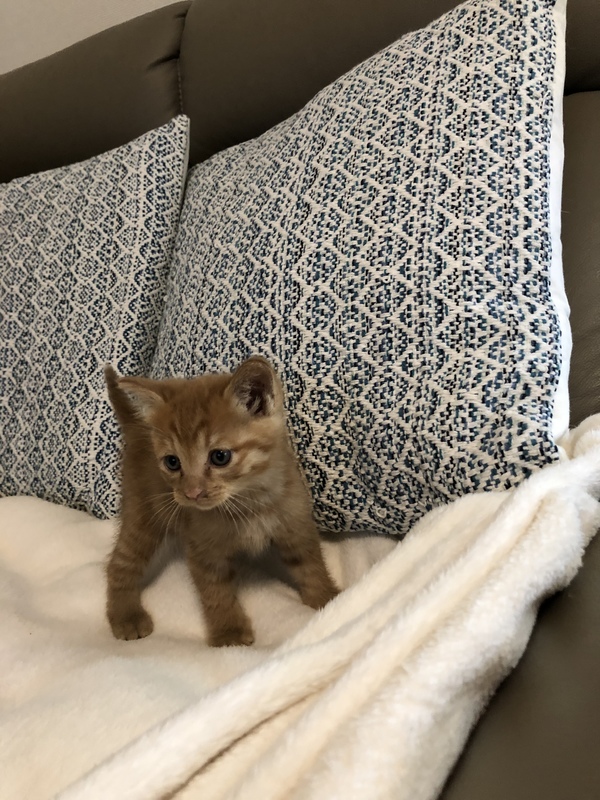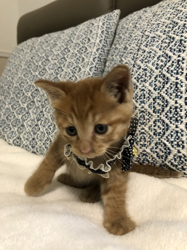 | 特徴(性格など) | おっとりとした性格の子です。少し濃い色の茶トラさんです。三匹写っている写真の中の、1番上の子になります。性別は生殖器がまだ未発達なのではっきりとはわかりません。 | ||