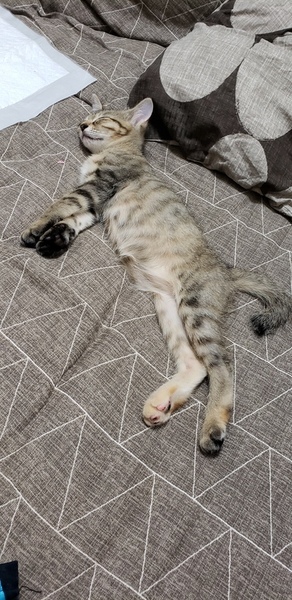| 特徴(性格など) | <応募があったため募集を一旦停止させていただきます。>生後数時間から寝ずに一生懸命育てました。3匹兄弟のキジちゃんは69g。仔猫なのでやんちゃですが人が好きで優しい猫たちです、パンチも噛みも加減ができます。我が家に犬2匹猫3匹がいるため犬も猫も追いかけられなければ大丈夫です。ハンモックでいつも寝ています。猫エイズ陰性・白血病陰性、検便異常無しです。 | ||