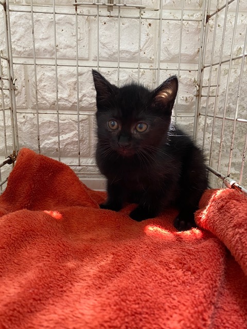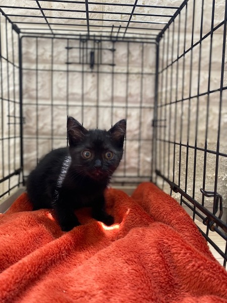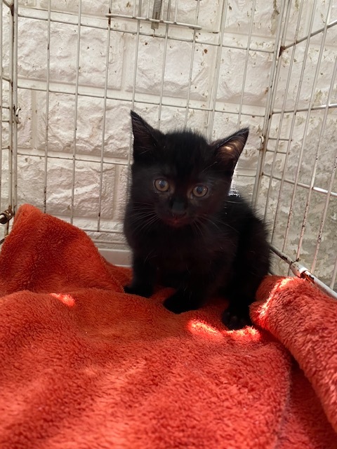 | 特徴(性格など) | 真っ黒の子猫です。フードもよく食べて元気です。 少し臆病なところはありますが、猫どうしでは仲良くなれると思います。 | ||