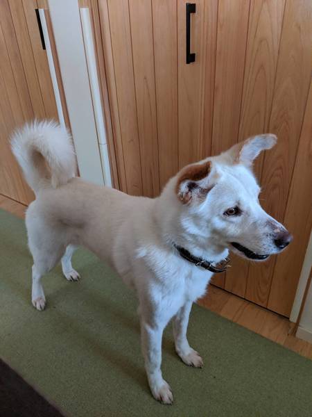 | 特徴(性格など) | 少し耳が大きな散歩大好きな女の子です 家族が在宅中はフリーにしています (いたずら等しません) 日中仕事で留守のときは、リードに繋いでいます(他にも保護猫や先住犬もいますので) 排泄は必ず散歩で済ませますので 粗相はありません 宅急便など、知らない人が来ると 先住犬と一緒になって吠えますが それ以外には吠えません 無駄吠えはなく夜も静かに寝れます 普段は落ち着いてるとはいえ、まだ若いので遊ぶのは大好きです(^^) ワクチン済み フロントライン済み(ノミダニ駆除済み) フィラリア陰性 |