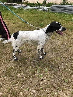 | 特徴(性格など) | 種類 イングリッシュセッター 年齢 推定3~5歳 サイズ 大型 名前:ビーチ 年齢:推定3~5歳 性格: とにかく絶えず動いています。散歩の時は、玄関を出る際、スワレ、マテをさせてから出ます。スワレ、マテはできます。散歩時は、横について歩くことができますが、突然、走ろうとすることがありますので、注意しながら歩くようにしています。 去勢前ほどではありませんが、足を高く上げてマーキングをします。 現在、足の長いビーチを超大型犬用のゲージを使用しながら、室内で預かっていますが、ゲージの中では、吠えることもなく、トイレの失敗もありません。何をされても噛むことはありませんが、とにかく人間が大好きで、愛情表現が半端ではありません。力が強いため、悪気はないのですが、人が跳ね飛ばされる心配もあります。無邪気で、可愛いです。庭で、フリーにしたときは、ジッとしていることはなく、動きまわっています。かなりの運動量が必要です。 犬に対しても友好的で、問題がありません。 若い犬でもあり、大型犬経験者希望です。 飼育方法については、応募してくださった方と、この子にあった方法を相談して行ければと思いますので、柔軟に対応していただける方を希望しています。 例えば、イメージでしかありませんが、可能であれば、家の中と庭を自由に出入りする方法で、飼育していただく方法。超大型犬用の大型犬舎を使用して飼育する方法。いろいろ考えられます。 健康状態 体重:22㎏ (体はほっそりですが、足が長いです。) 健康:混合ワクチン済 フィラリア(-) 検便異常なし 血液検査: すべての項目で、問題なし 去勢済 マイクロチップ挿入済 |