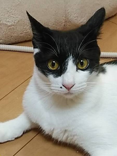 | 特徴(性格など) | チャームポイントは口元のホクロのような点。 性格は気は優しい。 人見知りですが甘ったれ。 猫は大好き。人より猫に先に慣れます。 なつくと床に座るとおひざに乗ってきます。ツンデレがかわいい子です。 びびりなので、カーテンの裏やすみに隠れてしまうので、最初はケージ飼育がよい。 現在はフリーになっています。 動きは、子猫なのではしっこい。 |