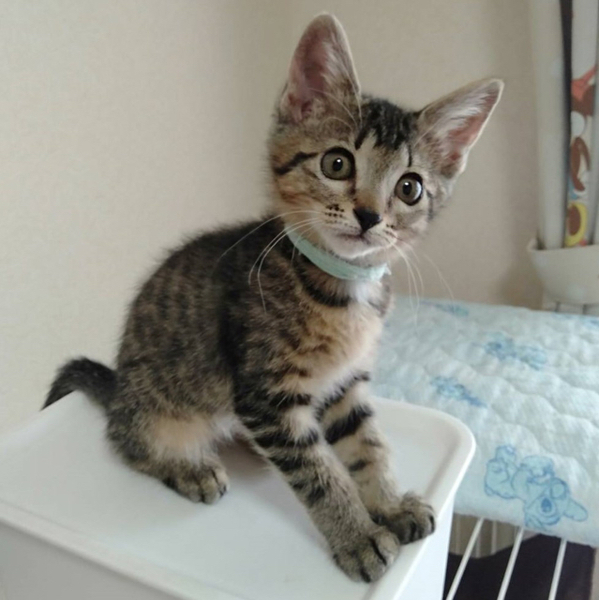 | 特徴(性格など) | ☆☆☆ご希望の方は、以下のアンケートフォームにご記入の上、送信してください☆☆☆ ねこ親希望アンケート→ http://chibawan.net/contactform_cat 【猫No】3082 【愛称】ローズ 【性別】メス 【年齢】推定2.5ヶ月(20/06/28現在)(20/04頃生) 【毛色】キジトラ 【体重】800g(20/06/28現在) 【状態】ワクチン1回接種済(20/06/27)、血液検査済(エイズ−・白血病−)、ノミダニ駆除済、駆虫済、トイレ躾済 【預かり場所】千葉県船橋市 【日記】Instagram jasmine81865 https://www.instagram.com/jasmine81865/ 【経緯】千葉県動物愛護センターより引き取り 【性格】ミルクから育てていますので人懐こくて甘えたさんです。 身体は一番小さいのですが、元気に走り回るとても活発な女の子です。 ニャンプロしたりネズミのおもちゃを追いかけたり兄弟姉妹で元気に遊んでいます。 一番オテンバで一番甘えん坊な三女と言う感じです。 ケージでお留守番も出来ますし、夜は大人しく寝るお利口さんです。 【補足事項】『ララ♀』『ヴィー♀』『アン♂』『ローズ♀』4兄弟姉妹です。 とても仲良しなので、一緒にお迎えして下さると嬉しいです。 兄弟姉妹が一緒ならお留守番も寂しくなくて安心です。 2~4匹一緒にお迎え下さるご家庭を優先させて頂きます。 大変申し訳ございませんが、仔猫のためお一人暮らしやご高齢の方のみのご世帯はお申込みをお断りさせて頂きます。 また長時間お留守をされるご家庭の場合も、条件によってはお申し込みをお断わりさせていただく場合がございます。 ※お試し生活は、不妊去勢手術などの医療処置が全て完了してからとなります。(7月末頃予定) 【その他】愛情いっぱいの終生飼養、ネコにあった生活スタイル、完全室内飼育、脱走・迷子防止対策、定期的なワクチン接種などの健康管理をお約束いただける 千葉近県(船橋市から1時間程度以内)のご家庭で、アンケートに快くお答えいただける方からのお問い合わせをお待ちしています。 |