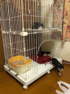| 特徴(性格など) | 鼻に鼻の模様があるので、はなおくん(仮名)素直な性格で捕獲器にも一番に入ってくれました。預かり宅に到着してからも一番に散策しはじめ、はなおくんが散策してくれたおかげでキョウダイ達もはなおくんの後に続き心を開きはじめてくれています。 | ||