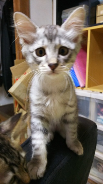 | 特徴(性格など) | 何柄というのか分かりませんが、全体的に白っぽいシルバーです。 毛なみはふわふわで手触り抜群です。 人見知りで引っ込み思案な所があるかな⁉️ 食欲旺盛で元気に走りまわってます。 |