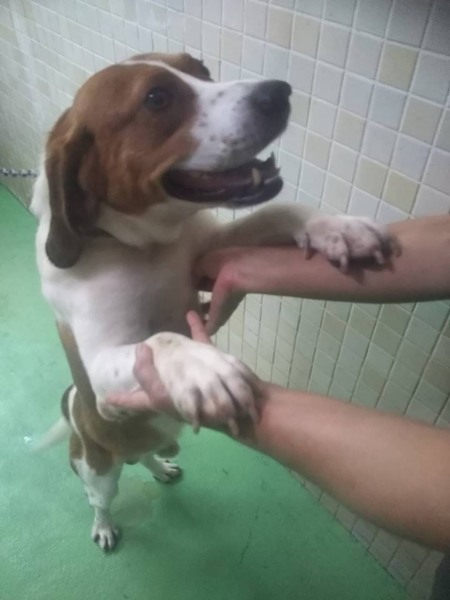 | 里親募集する理由 | 掲載を最後まで読まれて、アンケートを返信下さいませ 最後まで読まないでの応募が多数、見受けられます?️ ◆募集に至ったやむをえない事情 まだ3歳の人が大大大好き!可愛いやんちゃなビーグル系男の子が寂しく助けを待っています! 突然連れて来られて収容され、どんなに寂しく心細いか。一日も早く一般の温かい家庭の中で過ごさせてあげたいです。 ⭐️県外、遠方の方でも譲渡の条件が合い、良縁に恵まれましたら里親になっていただけますのでどうぞ宜しくお願い致します! ※募集内容を熟読し、必ずご家族とよく相談をされた上、ご家族全員の賛同を得られてからのお問い合わせ をお願い申し上げます。 ⭐️外飼いでは無く、室内飼育で家族の一員として迎えて下さる方は、「引き渡し方法」のところにあります【アンケート】にご回答と共にお問い合わせをいただけますよう、お願い申し上げますm(_ _)m 6/16(火)飼い主急逝により空き家に繋がれたまま残されていて長崎県動物管理所へ収容されました。 犬はどんな飼い主でも信じています。 可哀想に信じてきた飼い主が突然居なくなり収容された今どんなに寂しい思いでしょうか( ; ; ) この子に幸せを、温かい本当の本物の家族を見つけたいと願っております⭐︎⭐︎ 見た目の推定になりますがやや大きめの中型でどちらかというとがっしりした体つき、現在の体重は大体15キロ位でしょうか。歯は綺麗ですが爪がかなり伸びてしまっています(>_<) 優しい職員さん方が怖くないよ、今度こそは幸せになれます様にと毎日触れ合いながら、一生懸命にお世話してくださっています。 とにかく遊んでほしくて構ってほしくてお腹を見せたり膝に乗ってきて甘えてくる、子犬のまま体だけ大きくなった(^^)といった感じの子で他犬に対してもフレンドリーです。 無駄吠えはありませんが吠えた時の声は大きめです(^^;; お散歩も大好きで喜んで行きます。若くて元気ですし今のところ行きたくて嬉しくて、リードの引きはグイグイと強めです。 急な走り出しなども想定し、どんな子であっても油断は禁物で脱走、逃走には充分に注意が必要ですm(_ _)m お座りやマテなどの躾はこれからになります。 適切に制御し、躾や散歩などの運動の時間をしっかり取ることの出来るご家庭を希望しておりますm(_ _)m ) 無理もありませんがお散歩から戻って保健所の檻の中に入るのを踏ん張って嫌がるそうです( ; ; ) 人間が焦らずにゆっくり長い目で見守りながら、愛情を持って接すればこの子ならきっと、新しい家庭に馴染んでいけるのでは、と思います。 辛い過去がある事も踏まえ、又人を信じてくれる様に、ドンとこい^_^と仰って頂ける方、この先ずっと尻尾フリフリ♪ニコニコの笑顔にしてくださる方、いらっしゃいませんか? どうぞ宜しくお願い申し上げますm(_ _)m ⭐️必ず室内飼育で、譲渡後には速やかな病院受診・健康診断・去勢手術、混合ワクチンをする事が可能な、なるべくお留守番が少ない、沢山優しくスキンシップやコミュニケーションで触れ合っていただけるご家庭。 ⭐️室内でのトイレの躾も1からとなります。 未去勢で片足を上げて排尿します。 当分の間は何かと手がかかり大変だと思いますが(マナーベルトやL字型のトイレ、ペットシートを用意など) 覚悟と根気・理解で受け入れて下さる方。 ⭐️犬の飼育経験があり愛情を持って犬をしっかり躾することが出来る方、お散歩や運動、スキンシップやコミュニケーションに充分時間をあてられる方、場合によりトレーニング教室なども視野に入れて考えてくださる方。 何卒宜しくお願い致します。 ※混合ワクチン、狂犬病予防接種、フィラリア予防実績はありません。フィラリア陽性の可能性も0では無くあり得ることとなります(>_<) 以上の点を踏まえ、この子の置かれている状況、寂しかった、傷付いているであろう心をご理解のうえ、全て受け入れ寄り添っていただけるご家庭で終生可愛がっていただきたいと祈っております。 保健所収容された全ての子達は身勝手な人間による被害者であり、何も悪くありません( ; ; ) 家族の一員として生涯大切にしてくださる優しいご家庭とのご縁が結ばれ、お散歩から帰っても嫌な檻の中では無い、家族の皆さんとずっと一緒に居られるお家が見つかります様に。 残念ながら長崎県は平成28年度、29年度と殺処分数全国ワースト1位(30年度は3位)です。 県外、遠方の方でも譲渡の条件が合い、良縁に恵まれましたら引き出しや空輸、搬送など出来る限りの範囲内になりますがボランティアがお手伝いさせて頂きます。ご相談下さいませ。 搬送時には首輪とエアトラベルキャリーケースかケージが必要になります。 ⭐︎尚、キャリー・ケージは無料貸し出しも可能でございます。 後日返送して頂きます。 ※繋いで飼う、や、納屋、ガレージ、ベランダや玄関で、ずっとゲージやサークルの中、一部屋のみで、という飼育をする方は御遠慮下さい。 家族と一